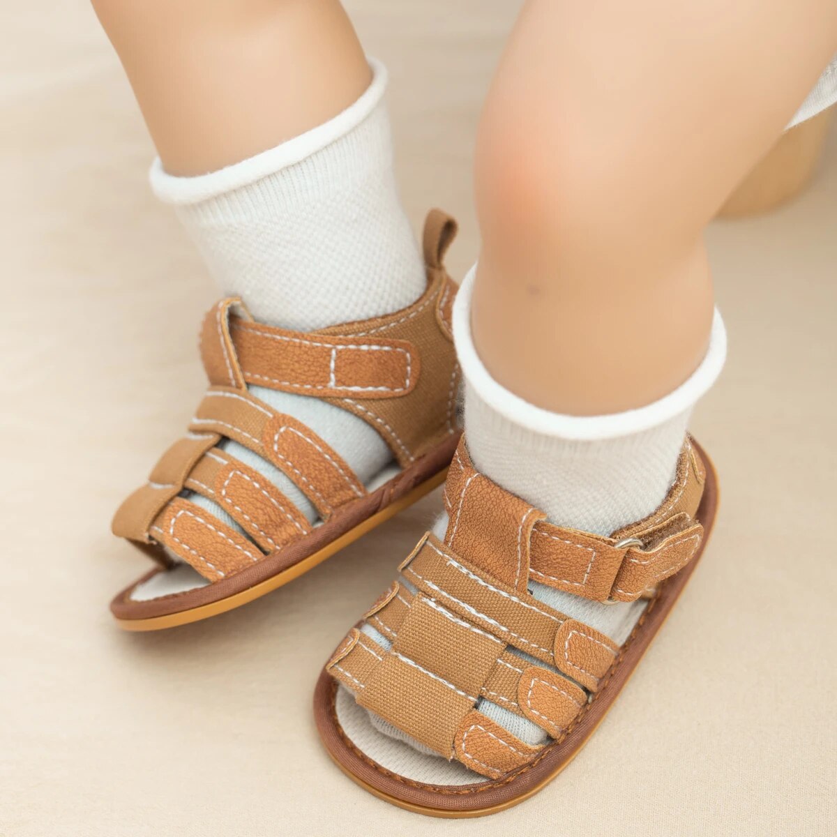Dessa charmiga sommarsandaler för små barn kombinerar stil, komfort och funktion. Det mjuka polyester-materialet ger en behaglig känsla mot huden, samtidigt som den flexibla gummisulan ger tryggt grepp på olika underlag. Kardborrebanden gör sandalerna enkla att justera och ta av och på – perfekt för både aktiva bebisar och föräldrar i farten. Ett måste i sommargarderoben för de allra minsta!