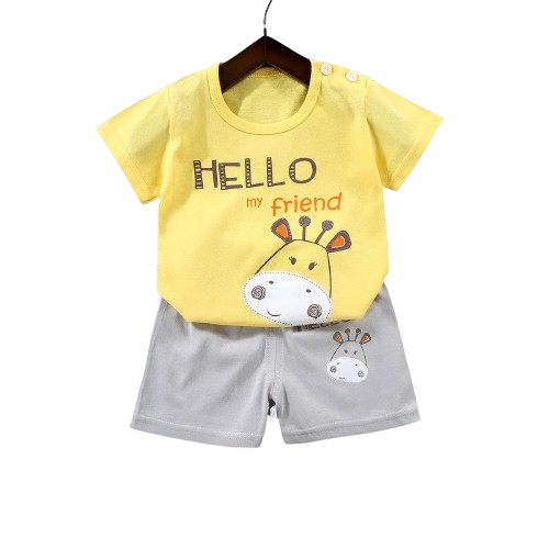 Låt ditt barn kliva in i sommaren med stil i detta underbara tvådelade sommarset! Setet består av en mjuk bomullst-shirt med lekfullt tryck och matchande shorts – perfekta för både lek, vila och vardag. Detta girafmotiv passar perfekt för djur älskaren där hemma. Den sköna passformen och de färgstarka trycken gör setet till en favorit i garderoben!