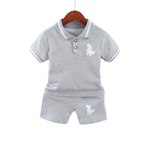 Ett klassiskt pikéset i bomull för de minsta – perfekt för både lek och stil! Setet består av en kortärmad pikétröja med krage och matchande shorts. Både tröjan och shortsen pryds av en söt liten dinosaurie, vilket gör detta set både tufft och charmigt. Finns i flera eleganta färgkombinationer som svart, grå och vit/svart – för varje smak och tillfälle.