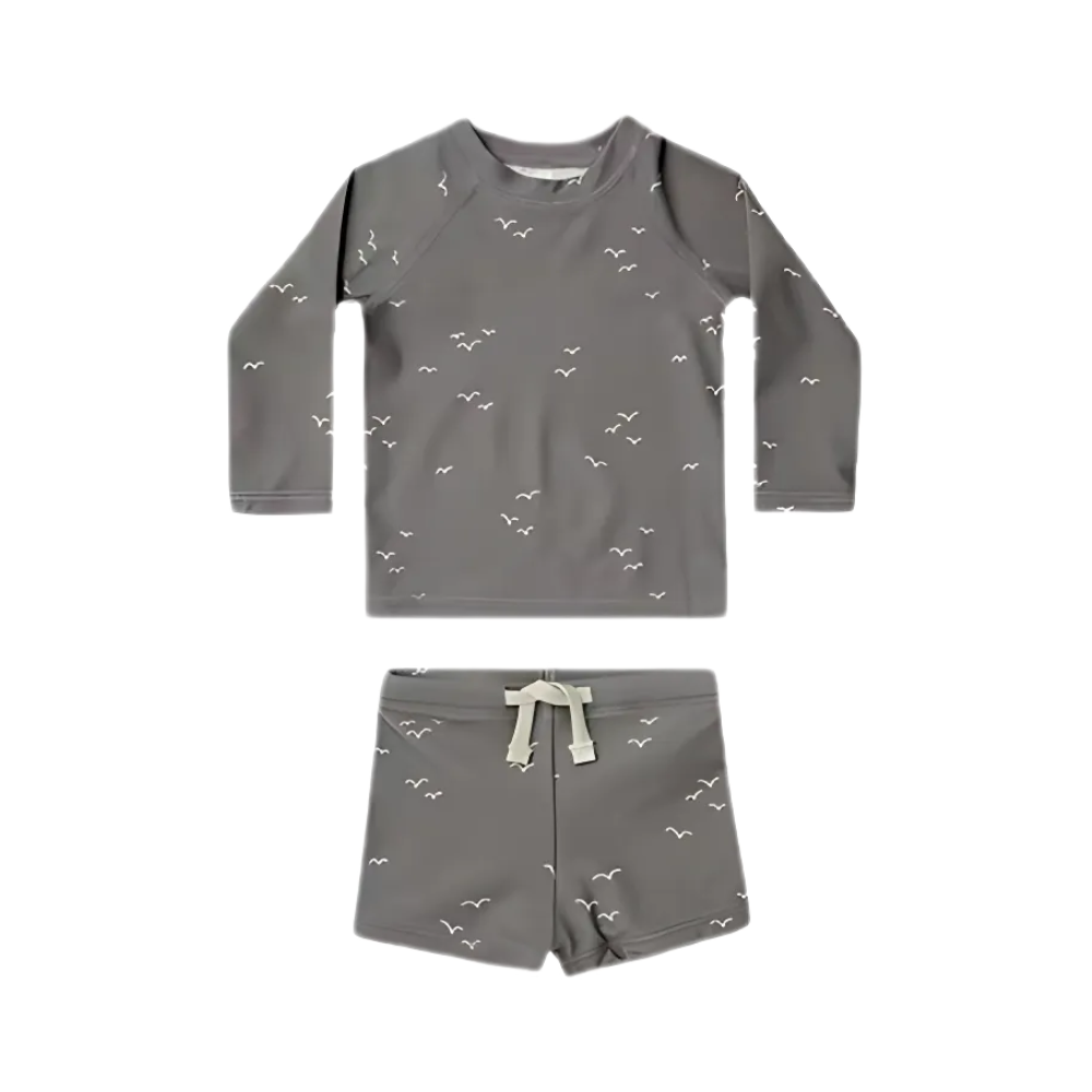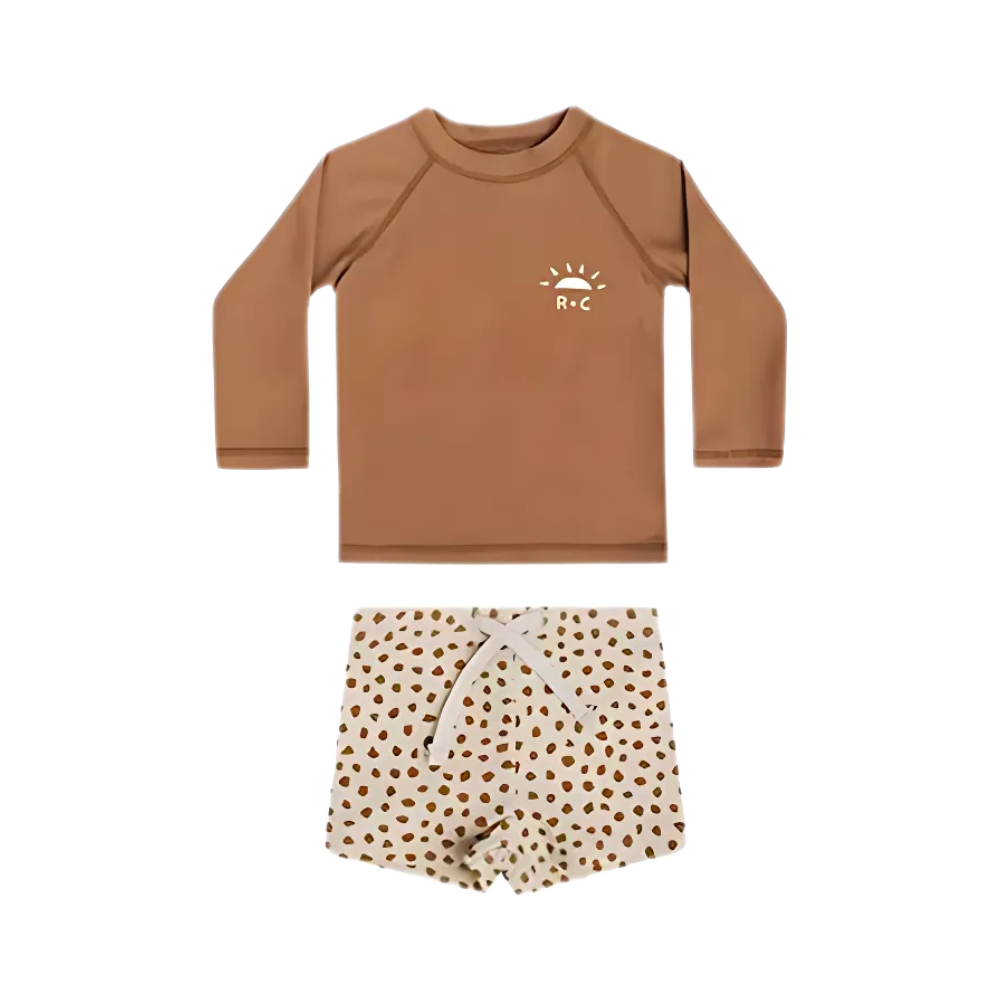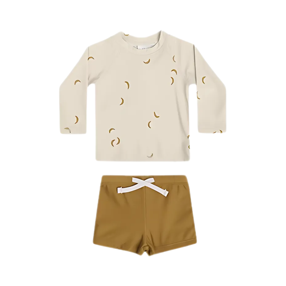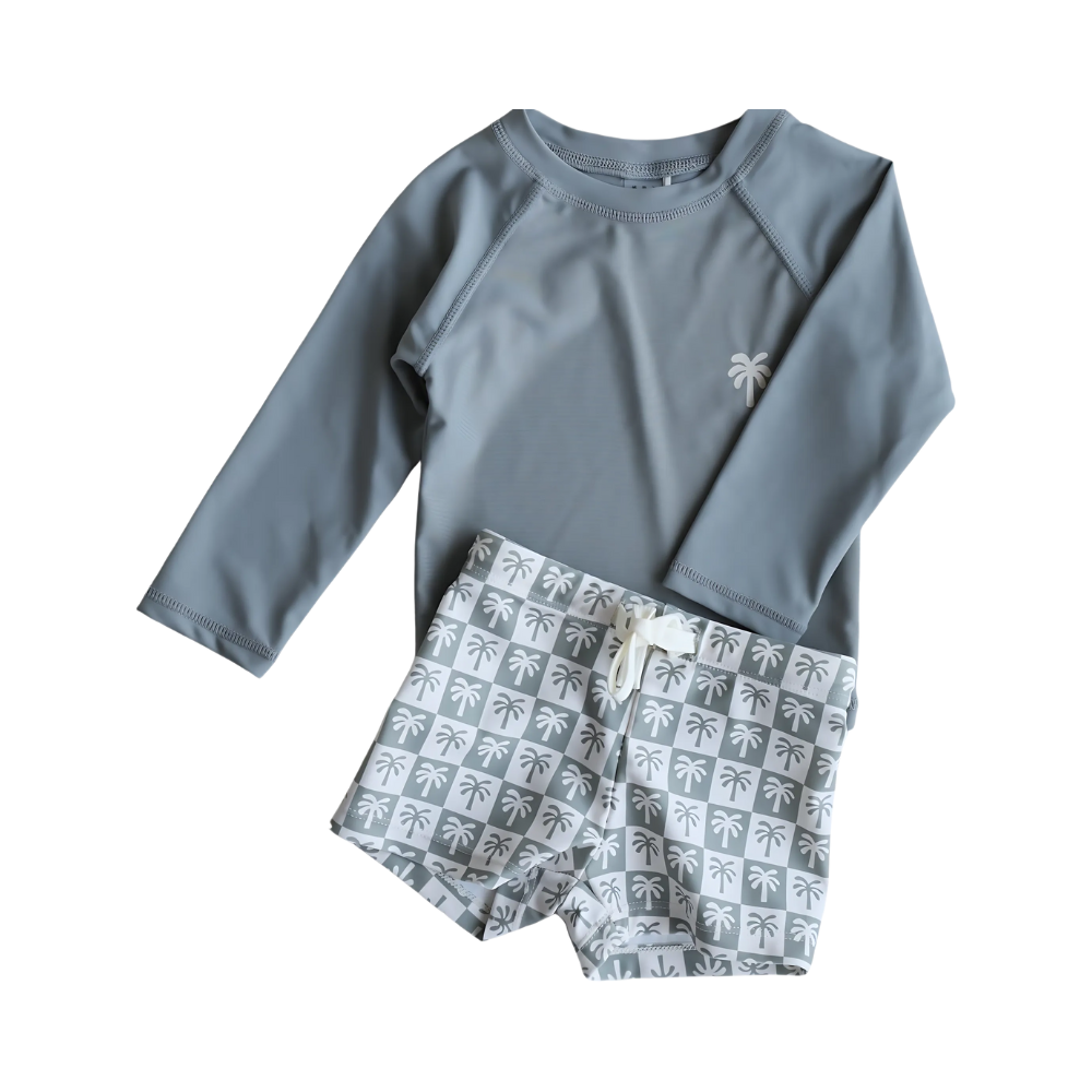 Skydda ditt barn mot solens starka strålar med vårt stilrena och funktionella UV-set – perfekt för stranden, poolen eller trädgårdsleken. Setet innehåller en långärmad tröja, matchande shorts och en liten hatt för extra skydd. Materialet är mjukt, snabbtorkande och har inbyggt solskydd, vilket gör det både bekvämt och säkert för ditt barn att leka i solen.